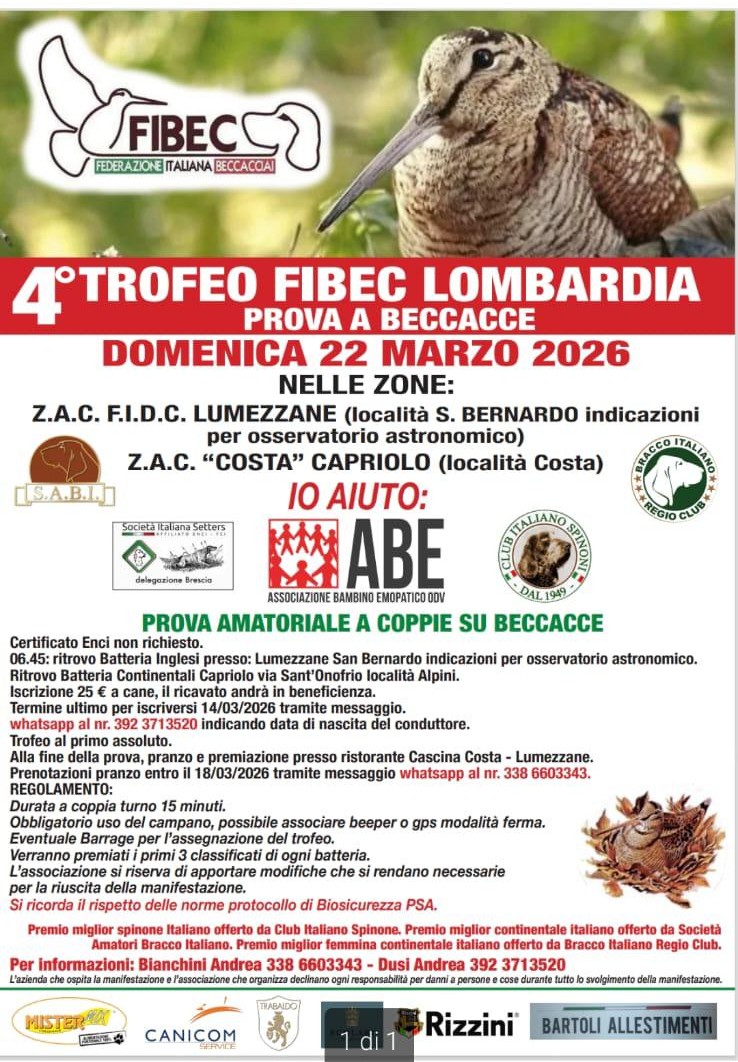 IV TROFEO FIBEC LOMBARDIA – PROVA AMATORIALE SU BECCACCE
